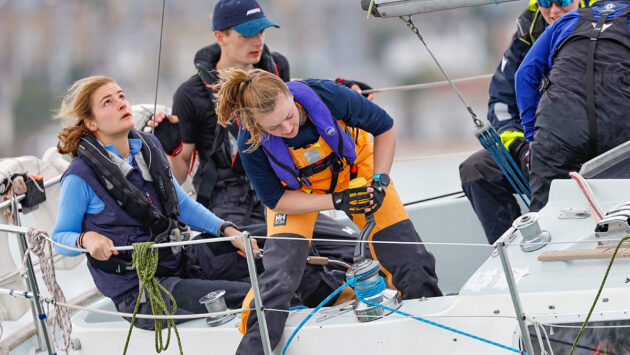Around 30% of competitors at Cowes Week are female, but for the Tuesday races that proportion increases, with more women taking on prominent roles. Glance around at any point during the day and you’d see women helming, trimming, navigating, or running the bow on all sizes and types of yacht and keelboat.
