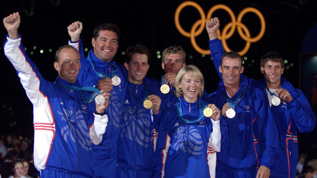 The 2000 Team GBR sailing team, including Ian Walker (left), Ben Ainslie (3rd from left) at the Olympic Games in Sydney Harbour. Photo: AFP/Torsten BLACKWOOD via Getty Images