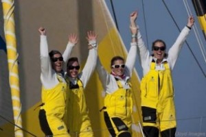 The all female crew on board Aviva set new record for sailing round Britain and Ireland