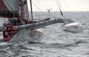 Vendeé leader Jean-Pierre Dick is sailing at reduced speeds after colliding with an unidentified object