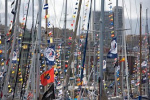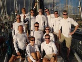 The crew of Challenger 1 bids Las Palmas farewell at the race start