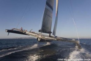 See the big French trimaran foiler chasing a new outright speed record