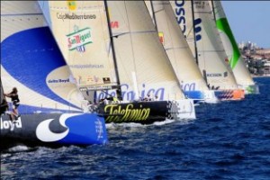 Volvo teams take part in a practice in-port race in Alicante ahead of Saturday's start