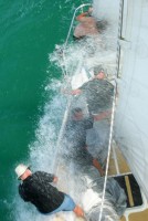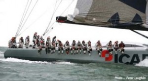After taking on water from the bow, it didn't take long for the TP52 to sink. See photo.
