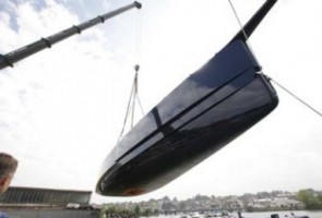 Russia's new Volvo Open 70 is lowered onto the water in Lymington 27/5/08