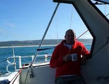 Pete Kyne, his 17-year-old son, and one other crew rescued after his catamaran is holed