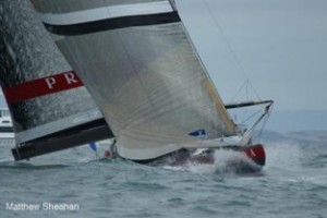 Ian Braham's Dean & Dyball Enigma hits a rock while leading Class 7 7/8/07