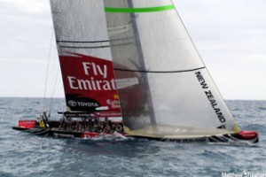 Emirates Team New Zealand take a second win in race three, but only just. Matthew Sheahan reports