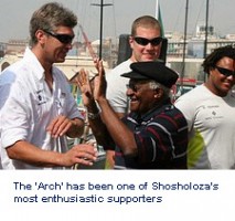 Shosholoza's Patron Archbishop Desmond Tutu pays tribute to the team in Valencia 11/6/07
