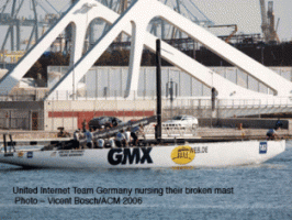 German America's Cup team breaks mast during training in Valencia yesterday 20/9/06