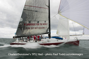 Owner Charles St Clair Brown, and tactician Harold Cudmore on today's round the island record 3/8/06