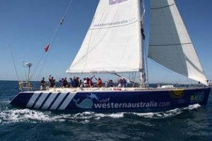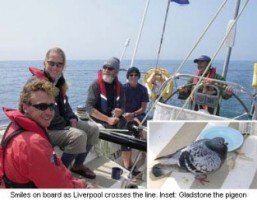 David Pugh and team aboard the Clipper yacht Liverpool crosses the Jersey finish line 21/7/06