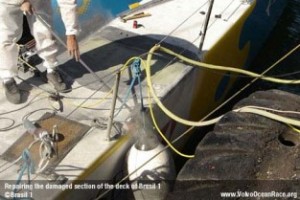 After five days spent repairing structural damage to the deck, team Brasil 1 will be back racing again today