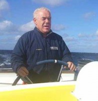 Tony Bullimore, skipper of second-placed Daedalus, congratulates Brian Thompson and his crew on winning the Oryx Quest