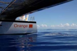 They may still be struggling in little wind right now but Peyron and team aboard the 120ft cat Orange II hope to be back on track again soon