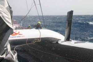 The crew of Geronimo have been able to assess the nature and extent of the latest damage to the trimaran's front crossbeam and have decided to retire