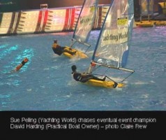 Sue Pelling, editor of Yachting World's website, was pitched against three other competitors on the indoor pool at the Schroders London Boat Show yesterday.