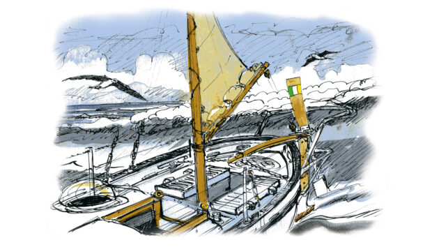 I winch in a few inches of jib, tighten down on the kicker of the mizzen, adjust the self-steering slightly, stow an errant trailing line. I do a quick check on the foredeck and rigging and dash below again before a wave breaks. The boat is like a sealed bottle or maybe even a submarine.