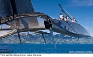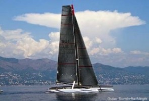 America's Cup Defender sails its giant catamaran in the Mediterranean for the first time