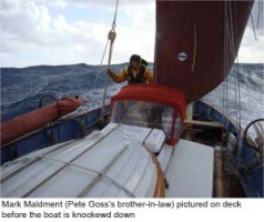 Pete Goss's boat is knocked over in storm causing crewmember to break his leg