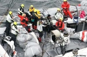 Sir Richard Branson and crew experience massive seas and stong winds on record attempt