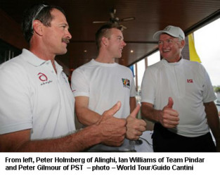 In Flight 3, Match 1, Peter Gilmour, the reigning Monsoon Cup and World Match Racing Champion, races against Peter Holmberg, of America’s Cup defense syndicate Alinghi. The two are spirited competitors who have a deft touch on the helm and use the rules to their advantage.