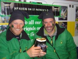 John Stewart and Giles Mackie are probably the most southerly Irishmen in the world: they're celebrating St Patrick's Day aboard leading Global Challenge yacht BP Explorer