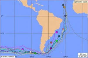 Bruno Peyron and his 14-man crew aboard the giant cat Orange 2 are continuing their rapid progress south down the Atlantic