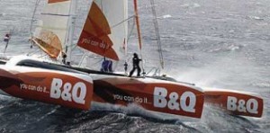 Bruno Peyron and his 14-man crew aboard the 120ft catamaran Orange 2 have covered 494 miles in 18 hours at 27.5 knots of average speed