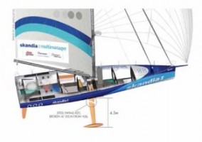 Skandia has suffered a major technical failure to the keel, which has led to the keel breaking away from the boat