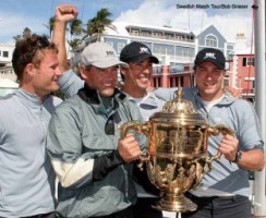 In a close final, Russell Coutts beat James Spithill to win the King Edward VII Gold Cup in Bermuda yesterday