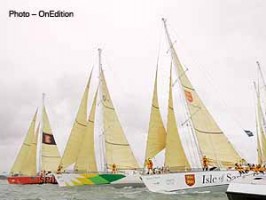 An exciting and clean start for the 12 yachts as they beat out of the Solent