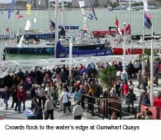 Global Challenge crews, friends and relatives prepare themselves for this morning's big send-off