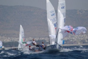 Light and fluky then strong and gusty, not a good day to discover you don't like it when it blows. Plenty to watch in Athens