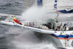 Karine Fauconnier and team aboard Sergio Tacchini are leading the 60ft multihull fleet