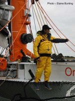 Bruno Peyron and crew aboard Orange prepare for an early morning Jules Verne start