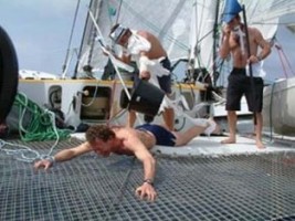 Steve Fossett's maxi cat crosses the Equator and for the unfortunate Mark it is his first time