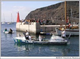 A team of four from the Dartmouth Rowing Club competing in the Atlantic Rowing Regatta ORSARR 2004 aboard Queensgate, their 24ft carbonfibre, Phil Morrison design are currently leading the 13-boat
