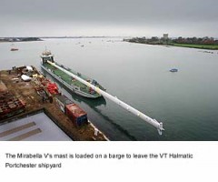 Mirabella V's 90m mast has been completed and once it's been dressed it'll be ready for stepping