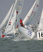 Steve Goacher continued his winning form to take the fourth day's racing at the Flying 15 nationals