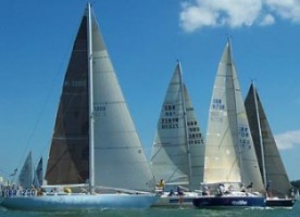 Swan 45s head the fleet after the first day's racing at the Swan American Regatta in Narrangasett Bay