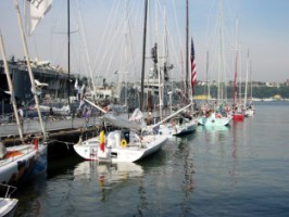 Hard work for the 13 solo skippers in Around Alone as they face a long beat out of New York Harbor