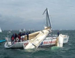 Maiden II cleared the Needles at 0950 after an 0830 start but Yvan Bourgnon’s tri made rather too spectacular a start on the Round The Island race.