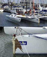 Despite a damaged bow, completing the 520 nautical mile Leg 4 in 49 hours places the Netergy.Com Challenge (Mollymawk) entry in first position overall…