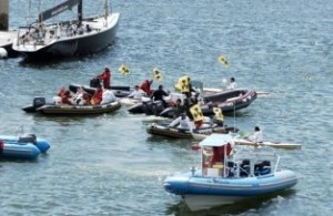 Le Défi Areva's new ACC boat FRA-69 was rammed and holed by Greenpeace activists at its launch this weekend