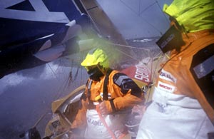Neal McDonald, skipper of ASSA ABLOY gave a vivid analogy of the boat being ‘tossed around like a cork’, as his wife, Lisa, skipper of Amer Sports Too, was rounding…