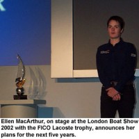 Moments after officially opening the London Boat Show 2002, Ellen MacArthur was onstage announcing her intention to attempt to break the Jules Verne record