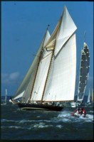 Tom Perkins'dark blue schooner wins the overall Yachting World Concours d'Elegance Trophy at the America's Cup Jubilee Regatta