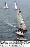 Kingfisher blasted out of the blocks, followed by Ecover and a rejuvenated Gartmore while Sill Plein Fruit, her mast restored, located a sandbar off Boston Harbour