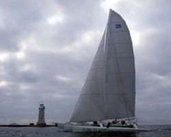 Francis Joyon’s 60ft trimaran Eure et Loir, undisputed leader of the 2001 Rolex Fastnet Race, turned the corner at 1940 last night